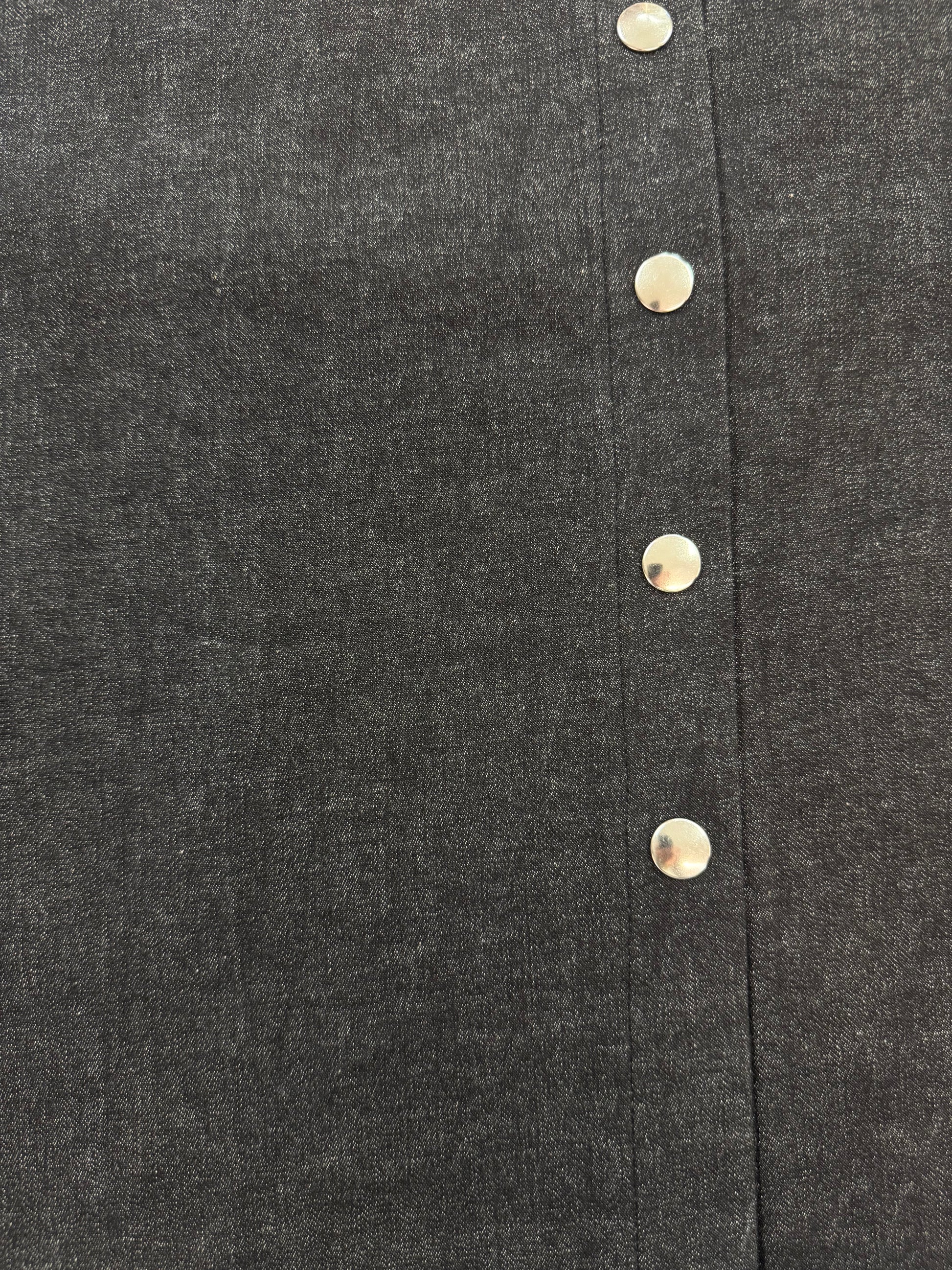 A-formet nederdel i sort denim, et rigtig 70'er ikon. Den er højtaljet, har lommer og lukkes med flotte metal trykknapper. En allround nederdel, perfekt til både hverdag og fest.