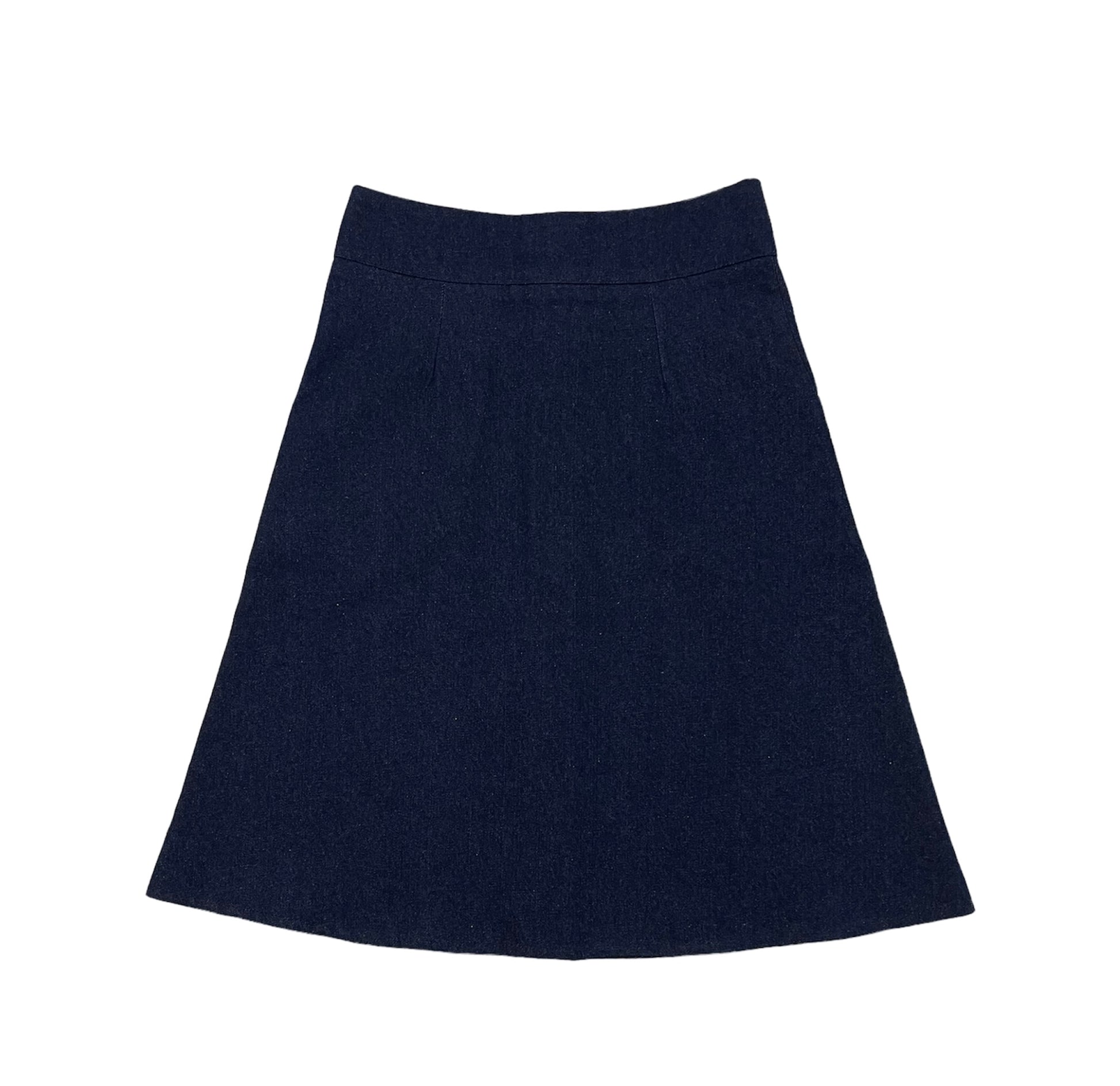 A-formet nederdel i mørkeblå denim et rigtig 70'er ikon. Den er højtaljet, har lommer og lukkes den flotte metal trykknapper. En allround nederdel, perfekt til både hverdag og fest.