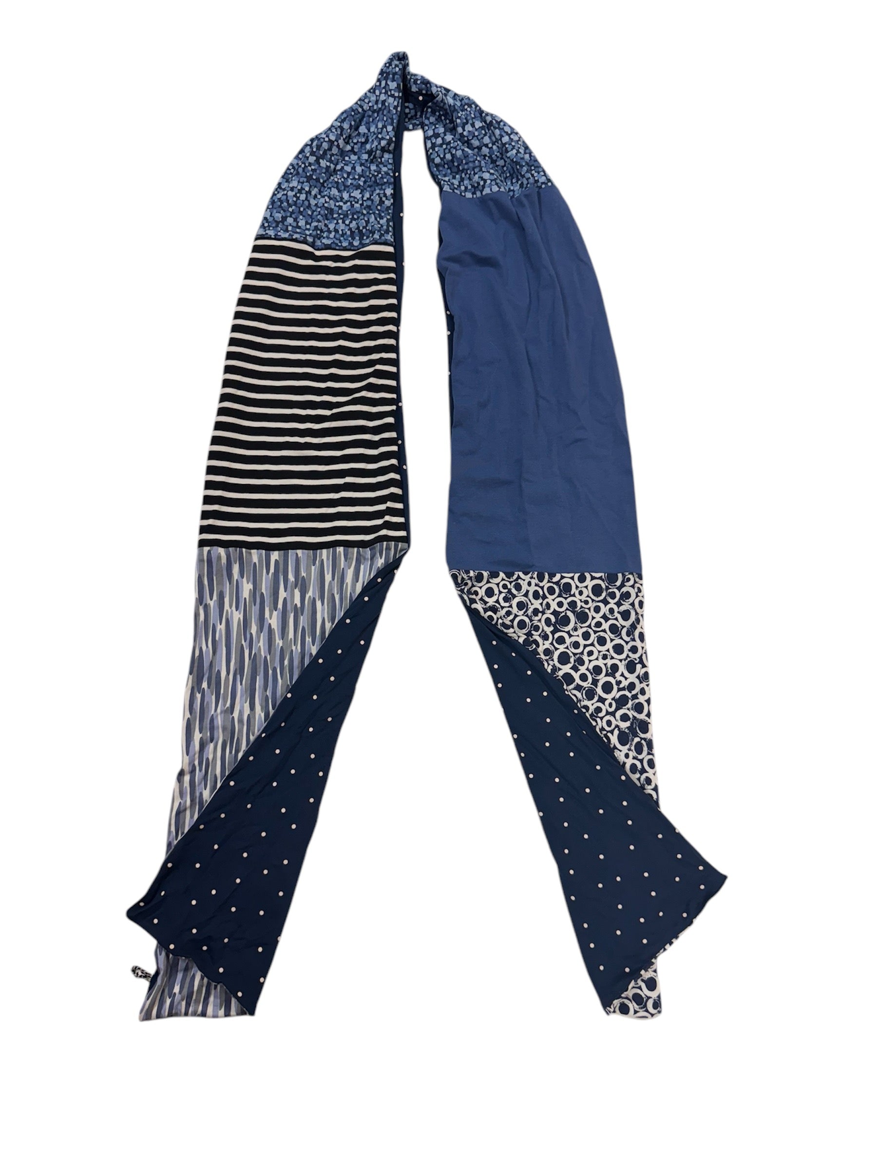 Tørklæde i bomuldsjersey. Mix and match smukt af forskellige prøver og rester i blålige nuancer. Til dig der godt kan lide mønstre.
