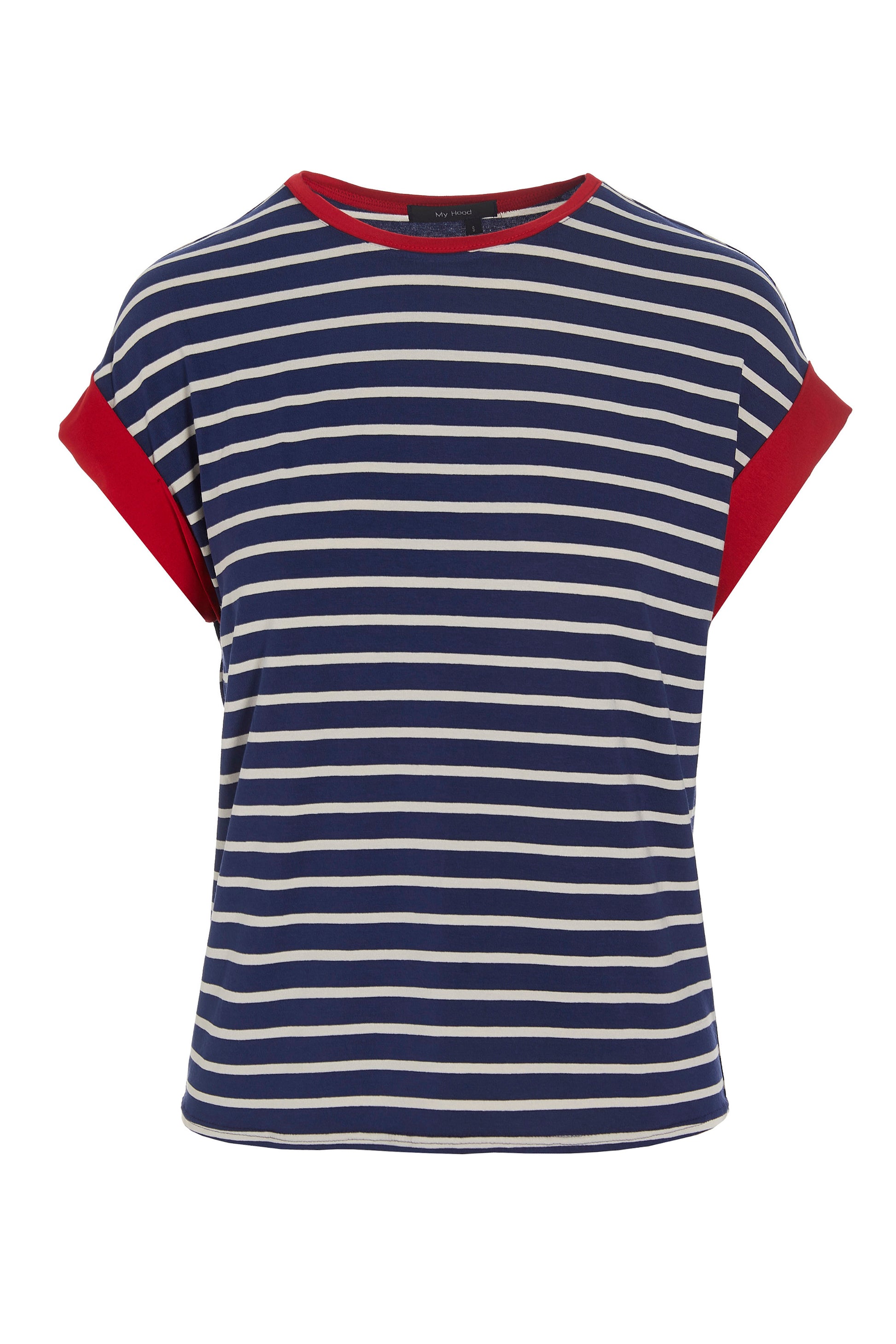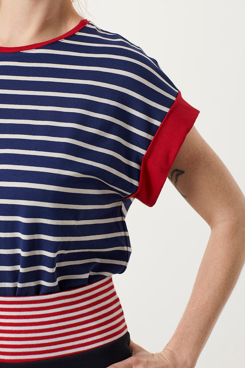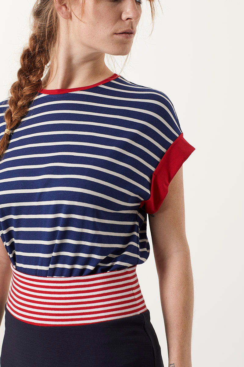 Stribet t-shirt med knald røde ærmer - til en sand sailor!