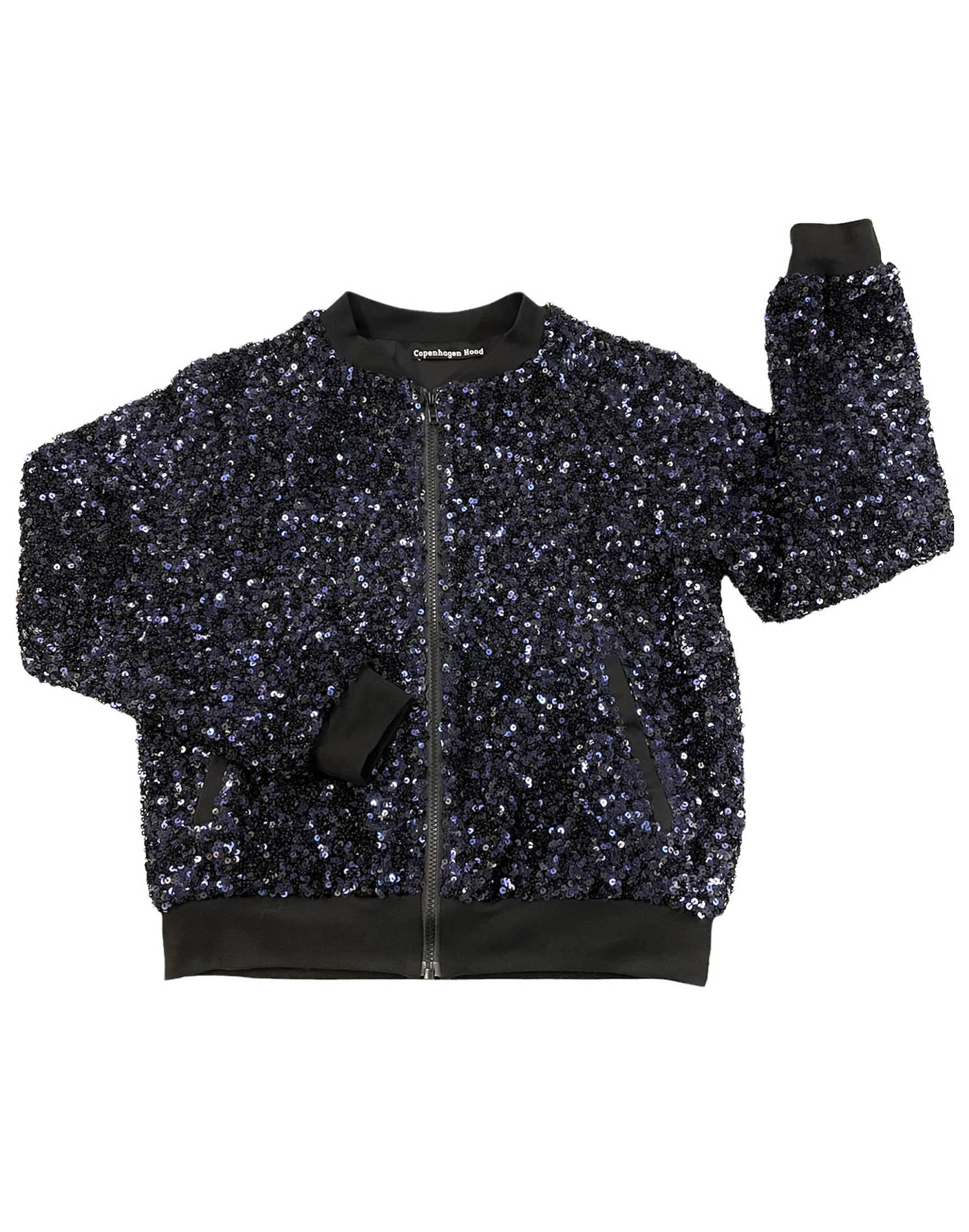 Fantastisk paillet bomber jakke i en smuk dyb blålilla farve. Den perfekte jakke, hvis ikke du er bange for at shine på dansegulvet.